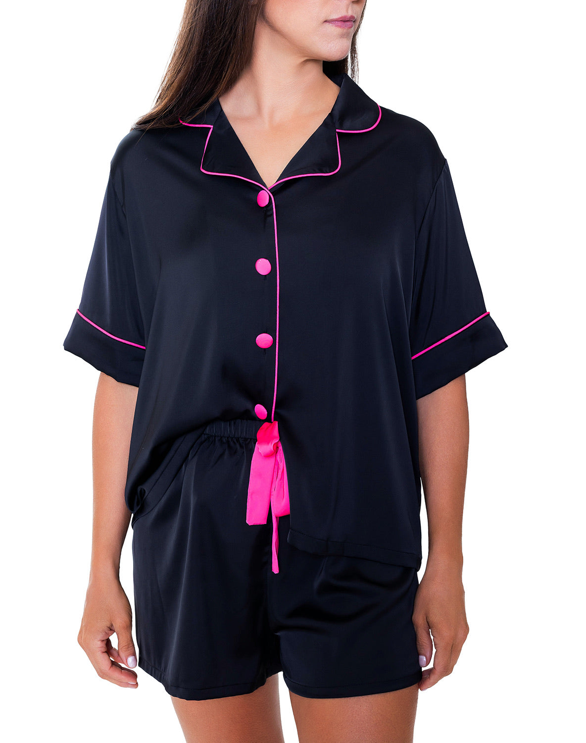Silky Black Short Sleeve Short Set